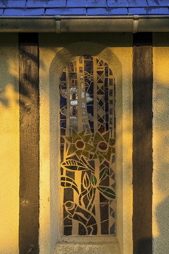 Toute son œuvre découle d'ici. Pour moi, c'est fondamental, c'est principal. Il y a la grande mosaïque (sur la façade d'un bâtiment), la chapelle (dont les vitraux ont été réalisés par l'artiste), les colombages qu'on retrouve partout dans sa peinture, la nature, la végétation, c'est primordial. Cette ferme, c'est la base. Quand on aime la peinture de Léger, on est obligé de passer par ici. »